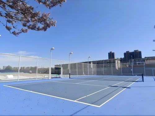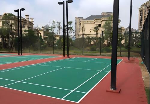 网球场硅PU地面翻新施工方案摘要:首先清理破损区域,打磨平整并涂刷底漆增强粘结力;分层涂装硅PU弹性层及面层,确保厚度均匀;最后精准划线并保养。施工期间保持场地干燥,控制环境温度5-35℃,材料充分固化后验收,重点检查平整度、弹性及防滑性能。