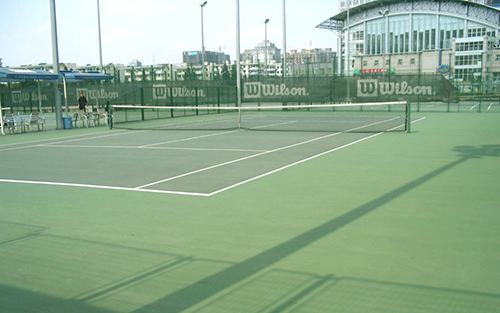 硬地丙烯酸网球场施工的流程包括:试水、补平、底层,加强层,纹理层,终饰层,划线。