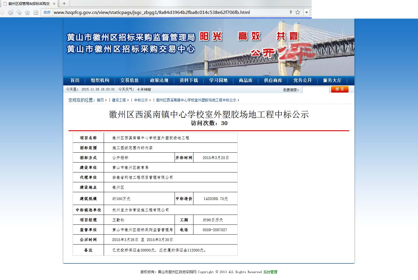 2015年3月26日中标徽州区西溪南镇中心学校室外塑胶场地工程中标公示-中国政府采购招标网