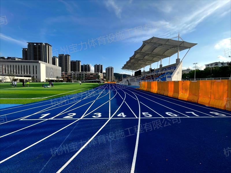 2023年由杭州宝力体育设施工程有限公司承建的杭州师范大学附属中学400米半预制塑胶跑道,人造草足球场以及采用EPDM环保颗粒铺设的多功能运动地面,为学校体育教学与活动提供了安全、专业的运动环境。
