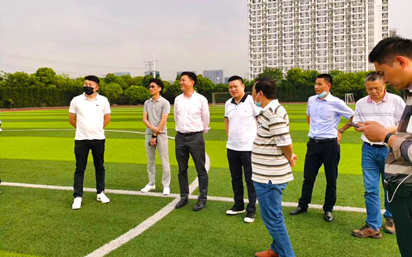 亚组委、浙师大等相关领导考察杭州宝力体育承建的人造草坪足球场