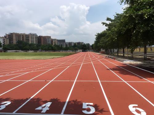 透气型塑胶跑道满足国标并降本的关键:材料选符合GB 36246-2018等标准的环保EPDM颗粒及净味胶水,耐老化且有害物质达标;设计采用孔隙率≥30%的透气结构、排水系统及土工织物缓冲层;施工严控胶水与颗粒1:6.5配比、分层摊铺(底层10mm+面层3mm)。