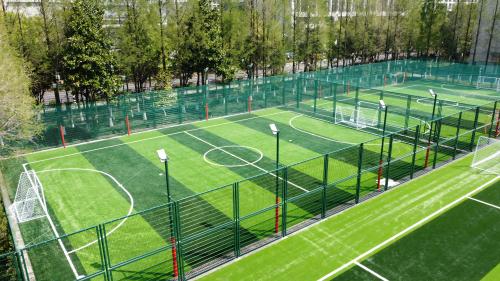 2023年由杭州宝力体育设施工程有限公司承建的杭州师范大学附属中学400米半预制塑胶跑道,人造草足球场以及采用EPDM环保颗粒铺设的多功能运动地面,为学校体育教学与活动提供了安全、专业的运动环境。