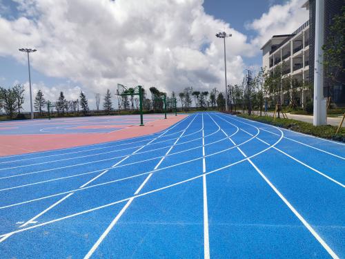 学校跑道鼓包多因基层积水受热膨胀导致。透气型跑道通过立体孔隙结构实现根本性解决:面层采用EPDM颗粒与聚氨酯胶黏结,形成连续透水网;底层渗水型弹性垫层加速排水;整体结构使雨水垂直渗透至基层,避免滞留。