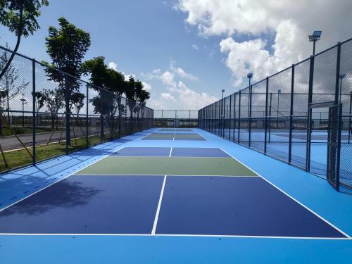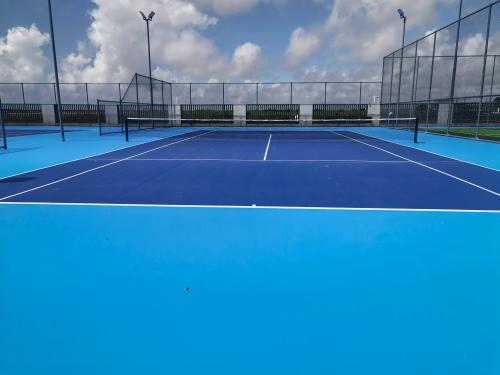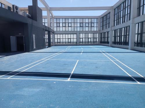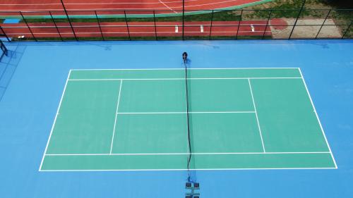 网球场地面划线脱落处理需系统操作:先评估脱落范围及深度,清理破损区域并打磨周边;选用聚氨酯或丙烯酸专业划线漆填充V形槽,干燥后打磨平整;最后按标准划线。预防需控制施工温度(180-220℃),避免高温或低温作业,定期检查基础平整度及排水系统。