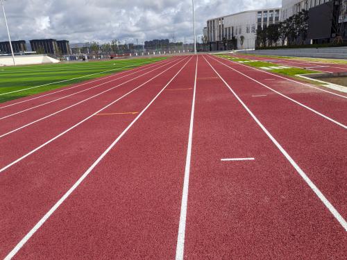 复合型跑道脱层多因材料老化、施工不当、环境温湿度变化导致粘结层失效。修复需先清理脱层区域,打磨基层,涂刷专用胶水后重新粘合,并加压固定。严重时需局部切除重铺,同时改善排水系统,避免水分渗透。日常应定期检查维护,控制使用强度,延长跑道寿命。