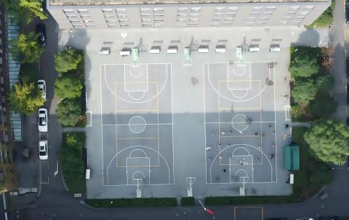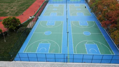 延长篮球场地面使用寿命的5个技巧:1.选用耐磨防滑材料(如丙烯酸、硅PU);2.定期清扫杂物,避免尖锐物划伤;3.控制使用强度,禁止高跟鞋或重物碾压;4.每季度检查修补裂缝、起泡等问题;5.避免暴晒雨淋,高温时洒水降温。