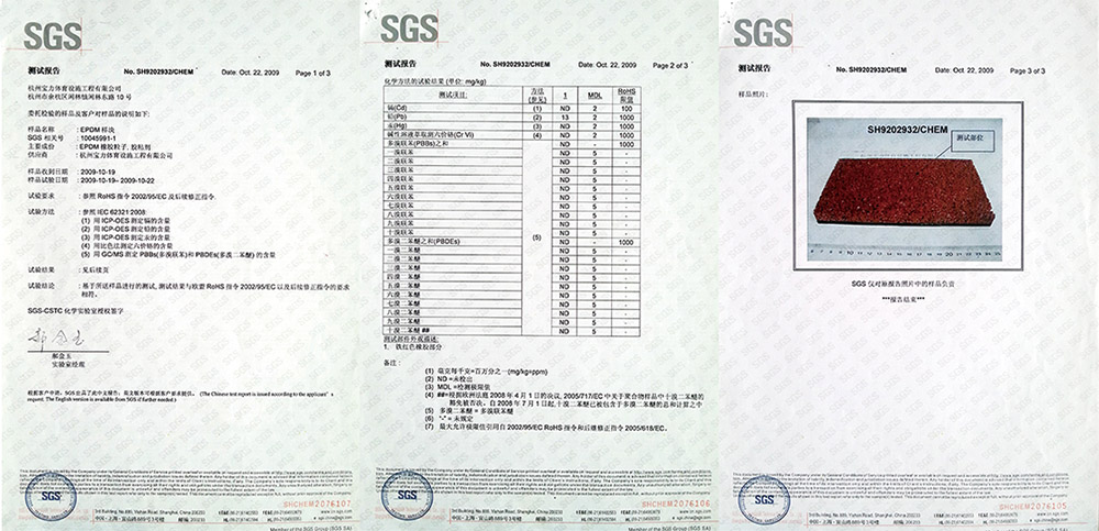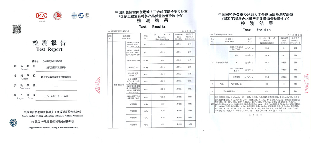 通过欧盟SGS安全环保认证,同时符合新国标GB36246《中小学合成材料面层运动场地》要求,上海团标要求。