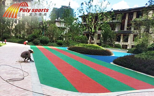 3. 施工方法:将罩面剂混合搅拌,用辊筒均匀涂布在彩色骨料层表面,保养一周即可使用