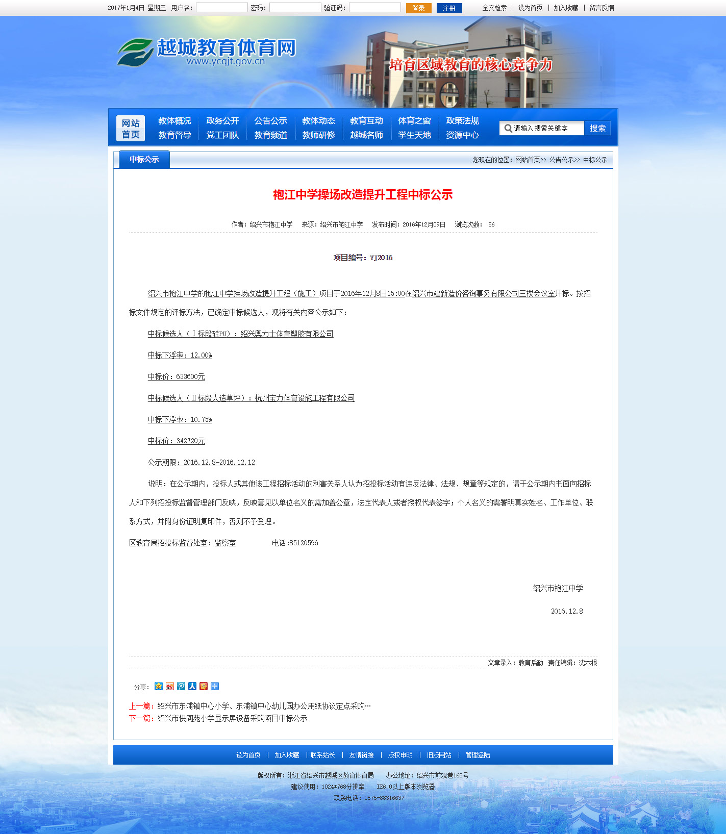 下一篇:杭州宝力体育中标缙云县职业中等专业学校、缙云县章村小学篮球场硅PU塑胶面层等采购项目