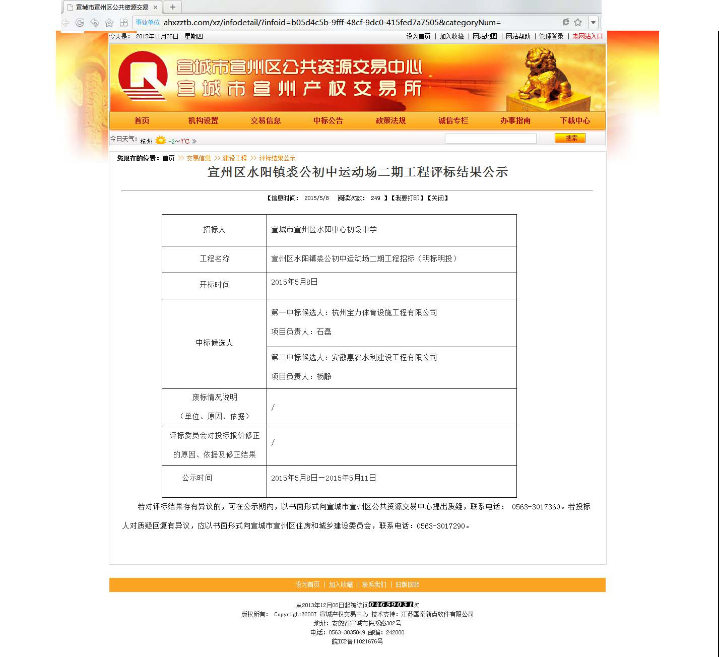 下一篇:杭州宝力体育中标徽州区西溪南镇中心学校室外塑胶场地工程