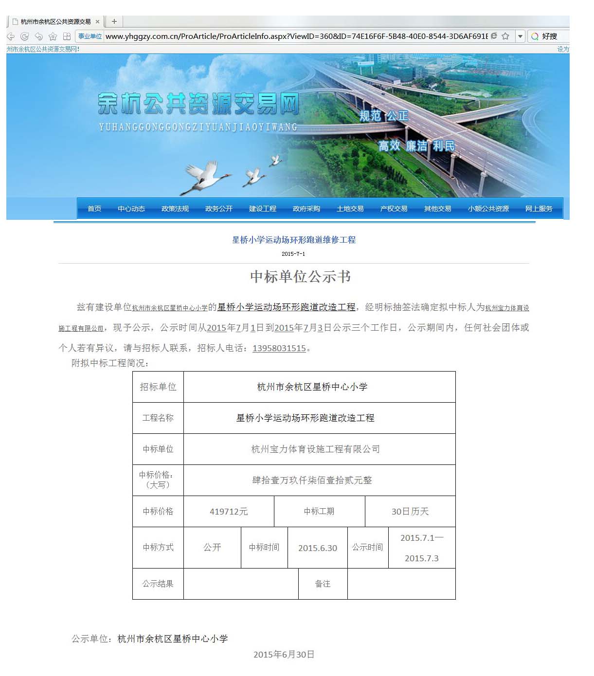 上一篇:2015年4月28日中标萧山区瓜沥镇二小合一(任伯年小学)300M田径场及附属工程