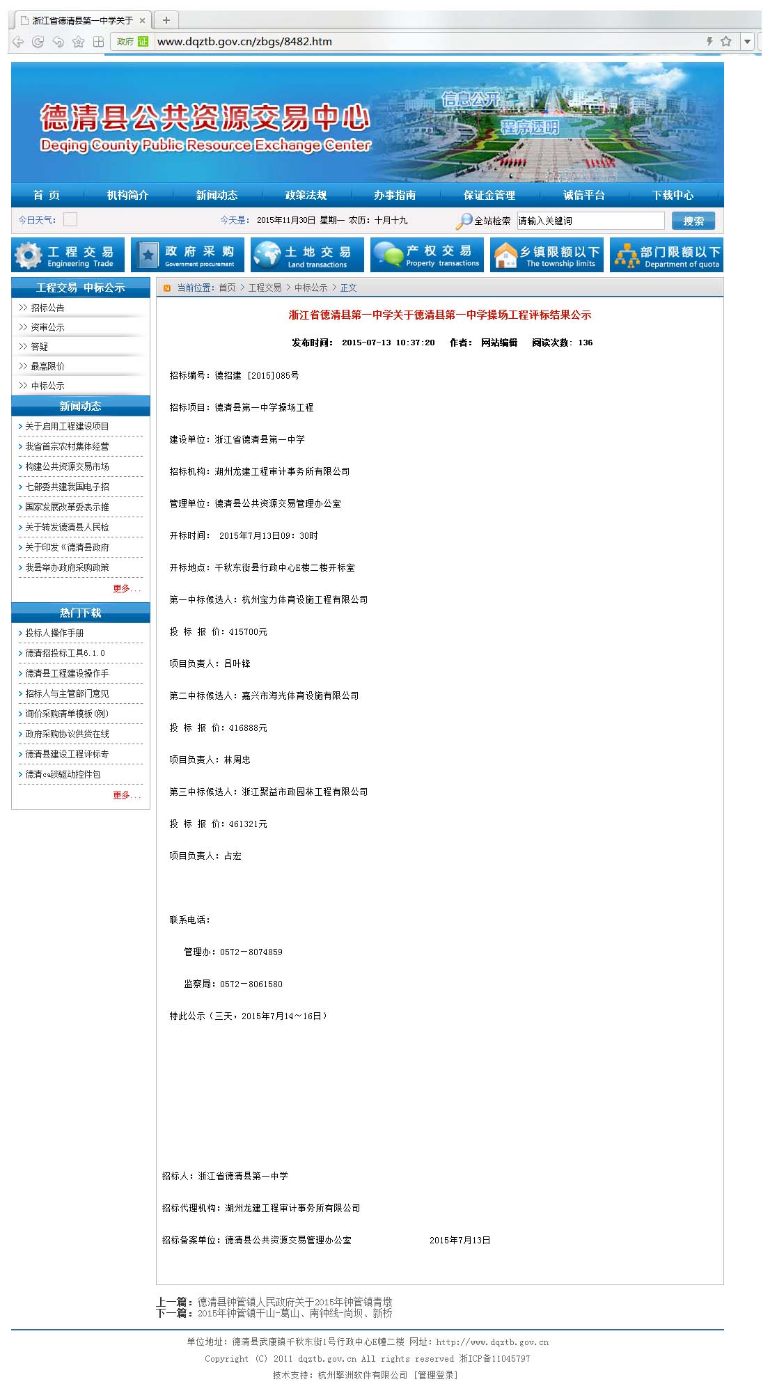 下一篇:2015年3月26日中标徽州区西溪南镇中心学校室外塑胶场地工程中标公示-中国政府采购招标网