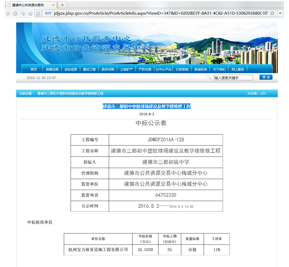 下一篇:2016年12月23日中标缙云县职业中等专业学校、 缙云县章村小学篮球场硅PU塑胶面层等采购项目(第二次)