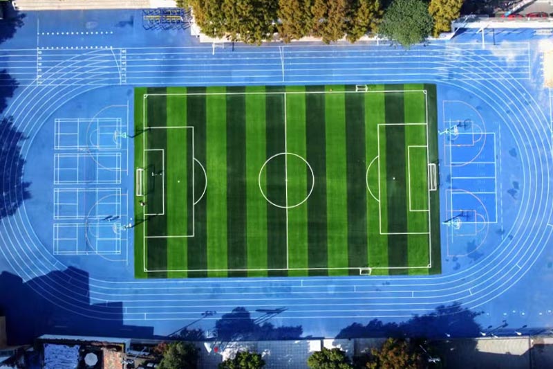 2023年由杭州宝力体育设施工程有限公司承建的杭州师范大学附属中学400米半预制塑胶跑道,人造草足球场以及采用EPDM环保颗粒铺设的多功能运动地面,为学校体育教学与活动提供了安全、专业的运动环境。