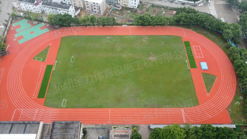 2024年由杭州宝力体育设施工程有限公司承建的宁海县黄坛镇初级中学400米透气型塑胶跑道项目,项目采用透气型塑胶跑道材料,具有透水透气、弹性优异、耐磨耐候等特点。周边配套足球门框等设施,满足足球与田径双项运动需求。