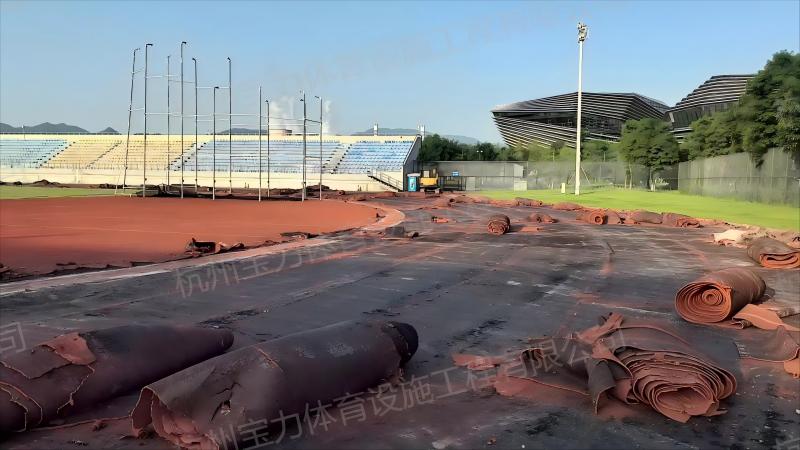 2025年由杭州宝力体育设施工程有限公司承建的浙江师范大学行知学院田径场400米塑胶跑道改造工程。该项目针对原有跑道实施基层全面修复与面层整体铲除更换,获浙江师范大学领导实地考察认可。