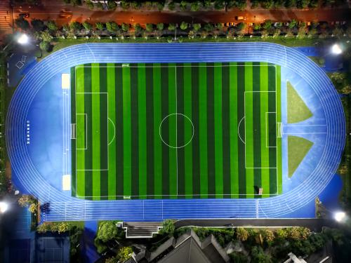 足球场人造草坪耐用性取决于材料质量、抗紫外线性能及维护。优质草坪含UV稳定剂,寿命6-8年,高端产品达8-10年。定期清扫、修补可延长寿命。高密度草丝设计减少磨损,适应高强度使用,确保场地长期运动性能稳定。